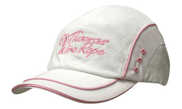 Gruba bawełna drapana, sandwich, wstawki z siatki, piping na koronie i daszku